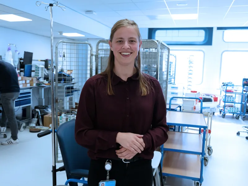Op de interventiekamers van het Erasmus MC werkt interventielaborant Leni. Ooit startte ze in een perifeer ziekenhuis, maar in het Erasmus MC vond ze de uitdaging, variatie en innovatie die ze zocht…