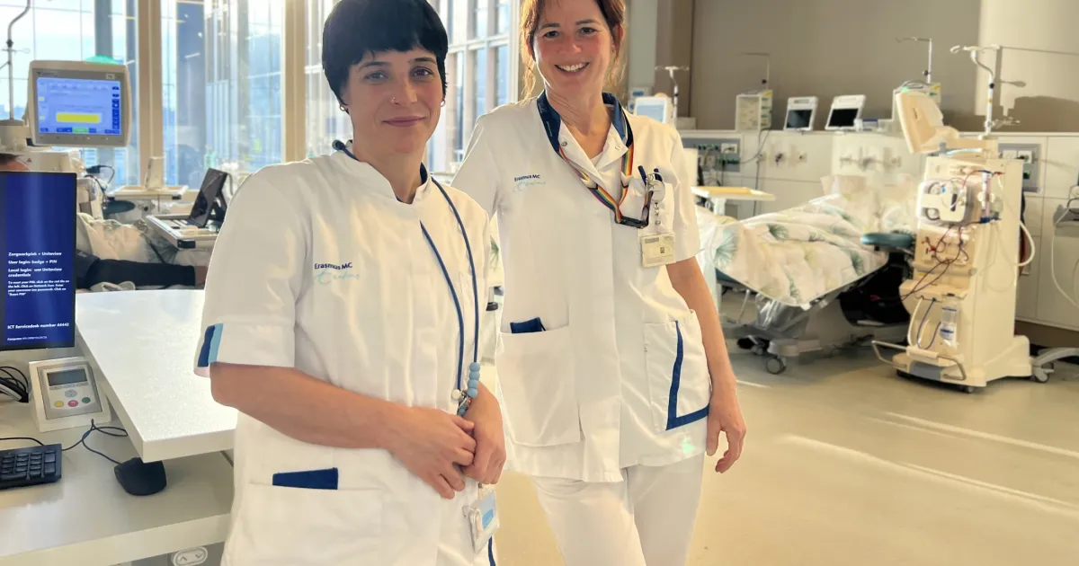 Als je Lucia en Martine hoort praten, begrijp je meteen waarom zij hun vak met zoveel liefde uitoefenen. Dialyse in het Erasmus MC is geen routinewerk. ‘Het is een mooie combinatie tussen technische zorg, intensieve begeleiding, teamwork en innovatie.’