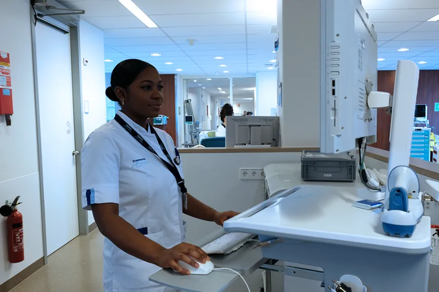 “Ik ben van mijzelf een rustig persoon. De afdeling Neurochirurgie kan best hectisch zijn, dus ik merk dat deze eigenschap goed van pas komt om de rust te bewaren. Regelmatig zijn er patiënten die plots achteruit gaan en dan moet je snel handelen. Je moet je controles uitvoeren, collega’s informeren over de situatie en verwachtingen uitspreken. Gelukkig hebben we een warm team met een fijn leerklimaat dus we helpen elkaar waar we kunnen.”