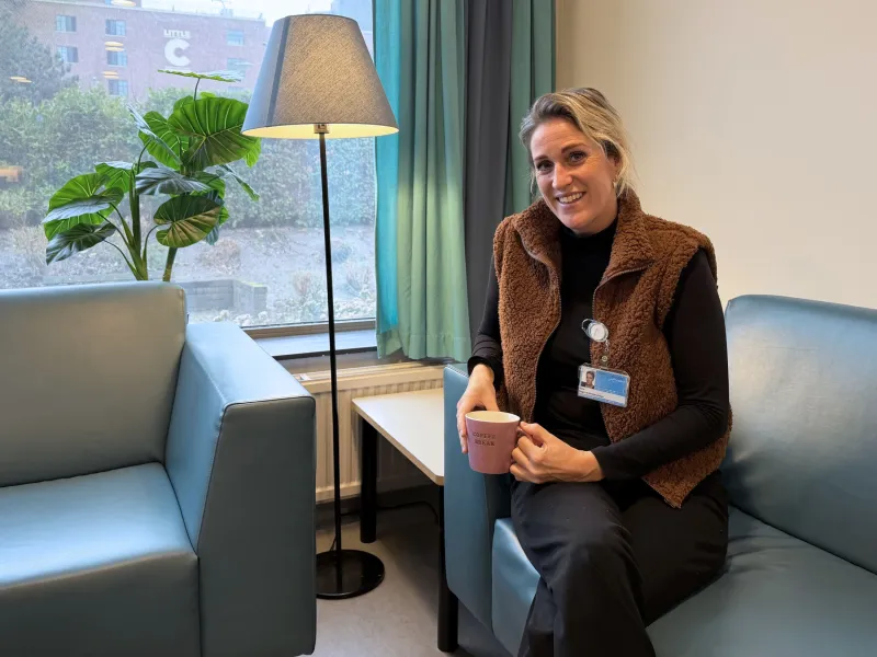 ‘Ik maak wel eens de vergelijking met een huiskamer. Tijdens mijn werk probeer ik voor een sfeer te zorgen waarin patiënten zich veilig voelen en zich kunnen uiten. Net zoals thuis in de huiskamer.&…