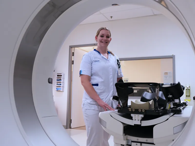 Nathalie is radiotherapeutisch laborant. Een verantwoordelijke functie waarbij zowel de patiënt als innovatieve bestralingstechnieken centraal staan.