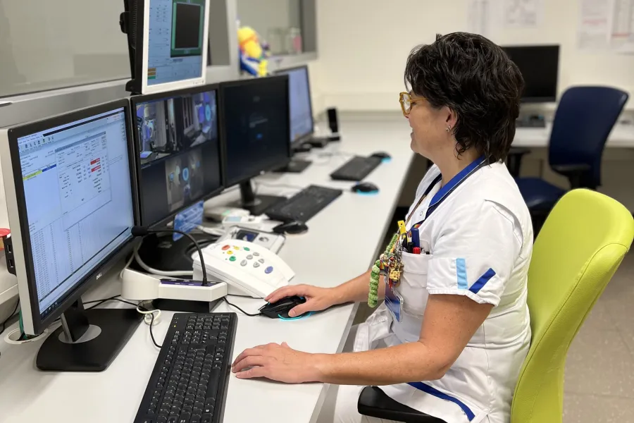 “De meeste mensen zijn gespannen als ze bij ons komen voor bestraling. Dat is ook heel logisch. Juist daarom probeer ik goed aan te voelen hoe iemand zich voelt,” vertelt Nicole. “En als er ruimte is voor een grapje? Dan maak ik die. Positiviteit helpt, voor de patiënt, maar ook voor jezelf.”