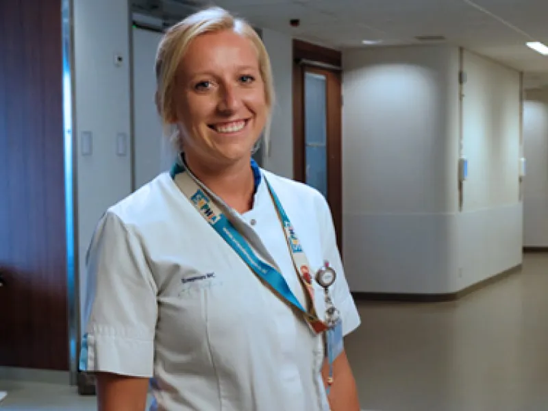 Sanne is verpleegkundige op de short stay unit van Erasmus MC-Sophia. Al van kleins af aan droomt ze ervan om kinderverpleegkundige te worden en die droom komt binnenkort uit.
